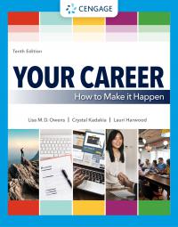 Moving you from "job seeker" to "job finder", Owens/Kadakia's bestselling YOUR CAREER: HOW TO MAKE IT HAPPEN, 10th edition, equips you with the tips, tools and step-by-step instructions to land an ideal job now and at every stage of your career. Marketing yourself to prospective employers can be overwhelming, so...