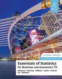 Deliver sound statistical methodology, a proven problem-scenario approach and meaningful applications that clearly demonstrate how statistical information impacts business decisions with Anderson/Sweeney/Williams/Camm/Cochran/Fry/Ohlmann's leading ESSENTIALS OF STATISTICS FOR BUSINESS AND ECONOMICS, 9E. More than 350 actual business examples, current cases and hands-on exercises draw from the authors’ unmatched experience to present...