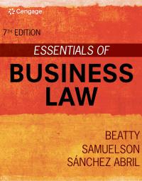 Discover the business law text you’ll actually enjoy reading. Time after time, students like you have commented that this is the best text they have ever read and they had no idea law could be so interesting. The student choice every time, Beatty/Samuelson/Abril's ESSENTIALS OF BUSINESS LAW, 7E is packed...