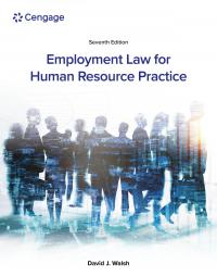 Packed with cutting-edge cases and hands-on applications, Walsh's EMPLOYMENT LAW FOR HUMAN RESOURCE PRACTICE, 7E explains major issues and rules of employment law behind each step of the employment process -- all in understandable terms. You learn how law impacts your career, as a manager or employee. Current news, typical...