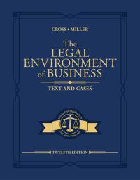 Cross/Miller's THE LEGAL ENVIRONMENT OF BUSINESS: TEXT AND CASES, 12th Edition, delivers cutting-edge coverage using an interesting, understandable approach. Master vital skills as you study the legal environment within the context of law in today's increasingly regulated business world. Examples, business-oriented features and step-by-step analyses place every topic within a...
