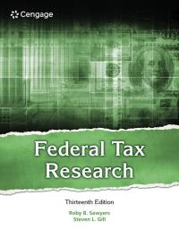 Gain a thorough understanding of tax research today with the hands-on practice you need to succeed in class and on the job. Sawyers/Gill's market-leading FEDERAL TAX RESEARCH, 12E's step-by-step approach uses current examples and engaging discussions to focus on the most important elements of federal tax law and tax practices....